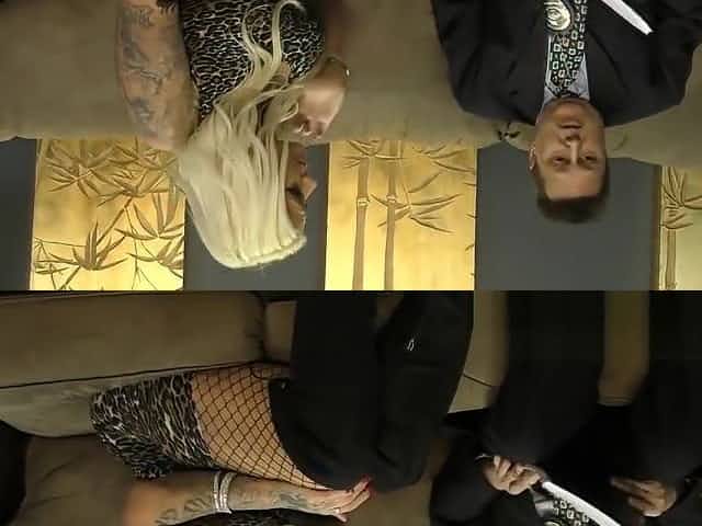 Lucky guy fucking hot blond milf on sofa