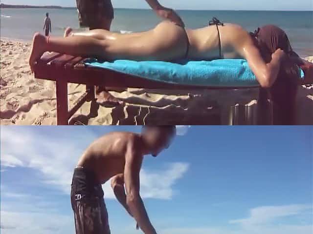 Lucky guy gets to rub a hot chick at the beach