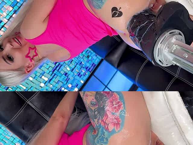 Hot blonde dildo fuck machine