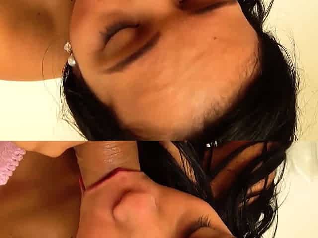 Huge boobs teen sucking and playing with dildo machine
