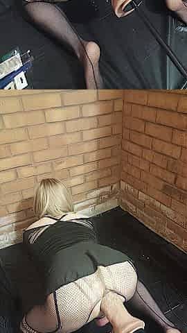 Sissy in White Lace Manacled in Chastity Meets Fuckmachine