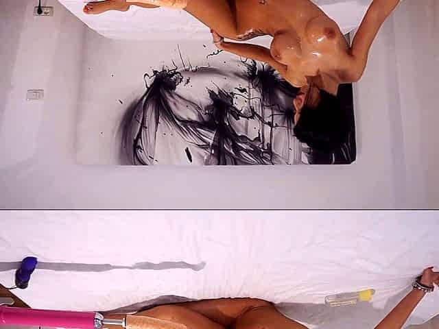 Anisyia Livejasmin gets massive oiled tits covered in cum from fucking machine blowjob