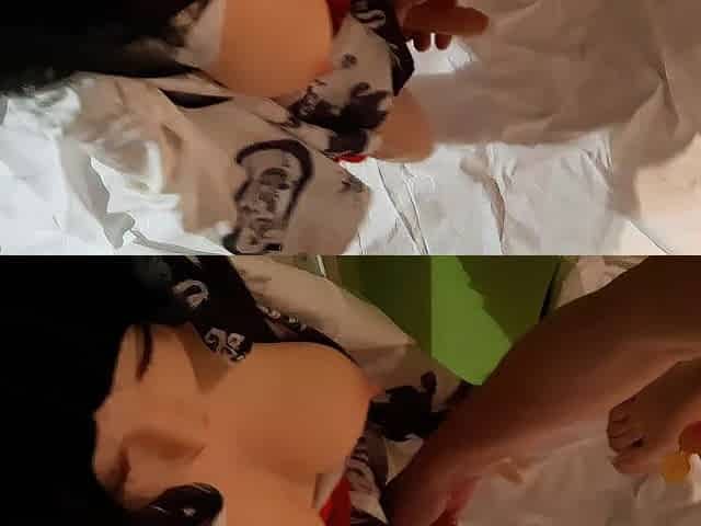 I hung my doll in a doorway swing and let her screw my booty.