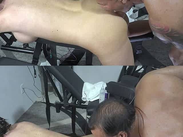 Hardcore anal session with the fuck machine at maximum speed, filling every hole!