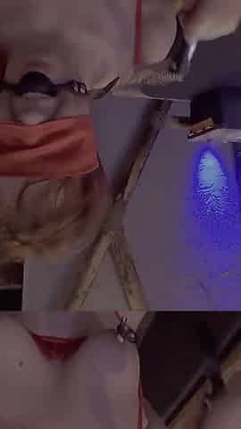 Multiple Orgasms on Sybian While Bondage BDSM Play in Dungeon