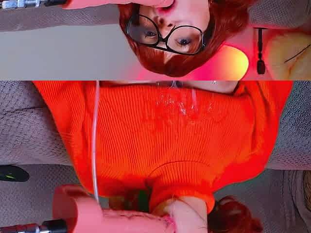 Velma is draining your Balls - Immodest and Sloppy Oral with a Screwing Machine