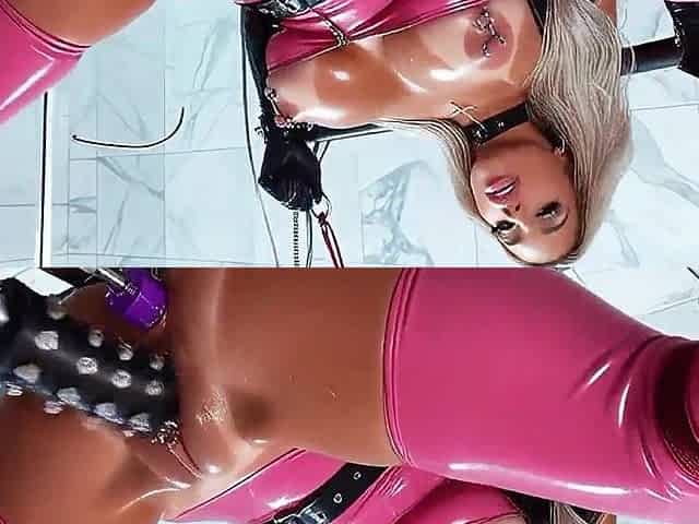 Mastix spitroasts feminized sissy shlong bitch with her ding-dong vibrator and a banging machine