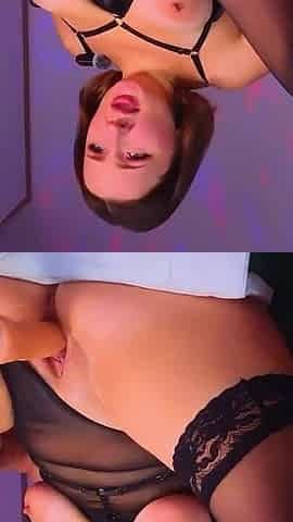 SISSY LOLA cheveux rouge mini jupe latex noir et talon aiguille se fait défoncer par sa machine à baiser