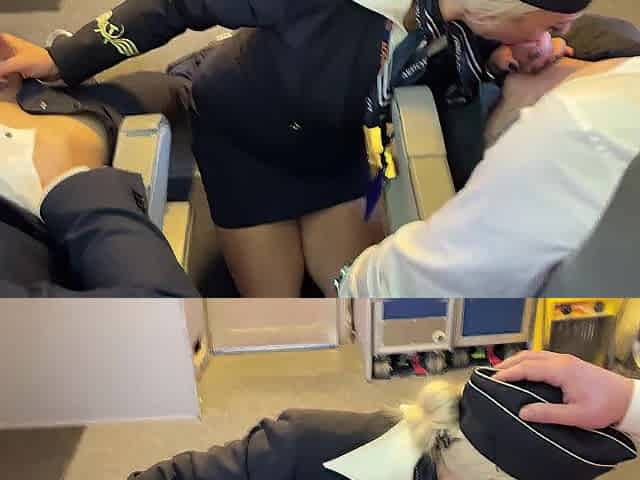 Married newcomer stewardess bang with the one and the other pilots during flight (double penetration)