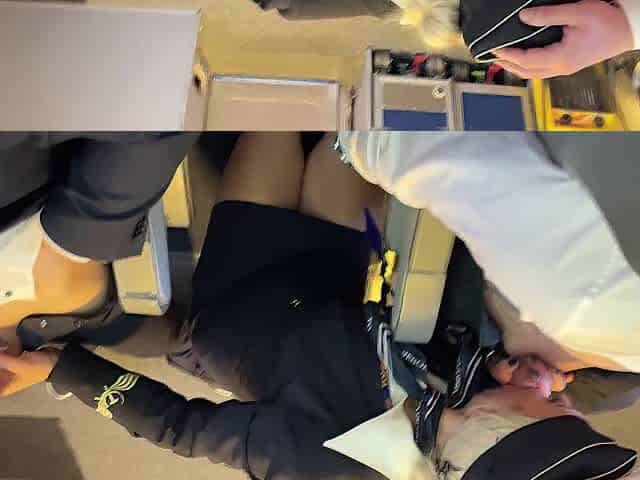 Married newcomer stewardess screw with the one and the other pilots during flight (double penetration)
