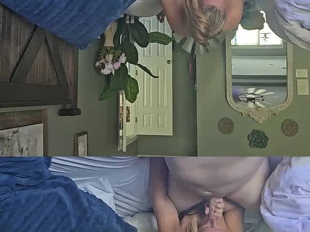 Blonde MILF gives her husband a sensual massage and POV experience.