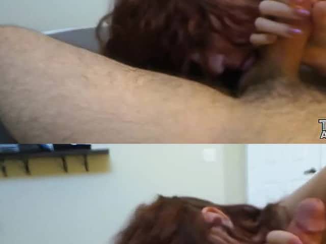 Brunette Hair with huge milk jugs is giving a POV oral sex to one of her married neighbors