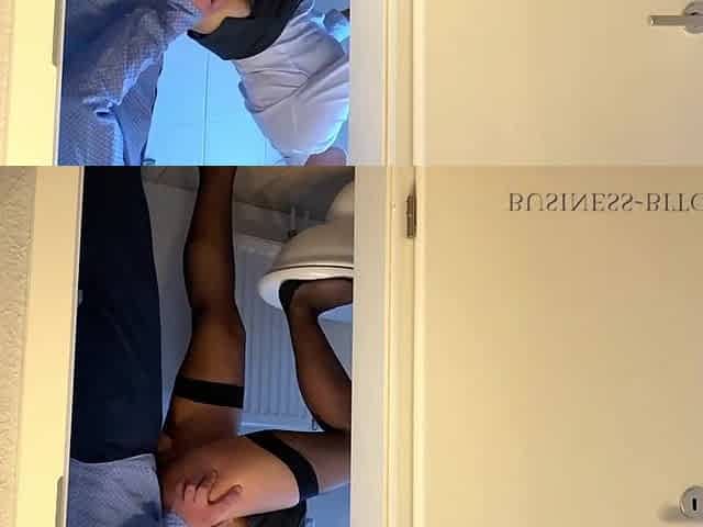 Married woman is getting banged in the WC, during the time that having a lunch break at work