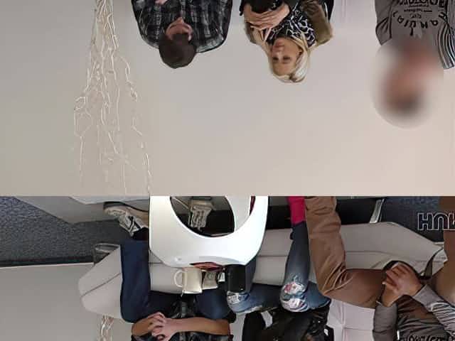 A married couple having sex with their stepdaughter in the living room