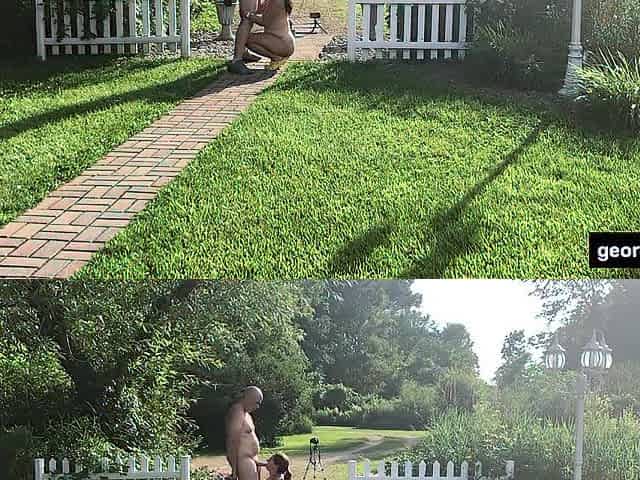 Neighborhood See - Backyard Floozy Missy Sucks Georges Schlong Outdoors In Full View Of Neighbors