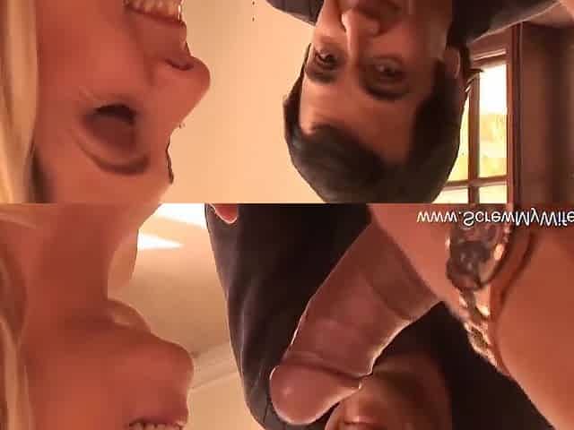 Large ramrod used to spank this married woman's large booty. Sitting and feeling the cum oozing down