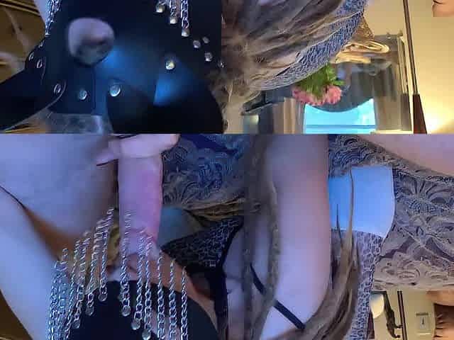 Youthful golden-haired with dreadlocks sucks and swallows grandads large white schlong