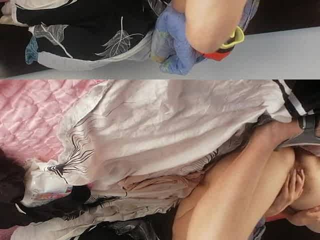 Masked Slut's Vibrator & Bottle Masturbation with Dildo