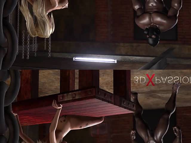 Young blonde whore gets fucked hard by a black man in a mask in a dark basement