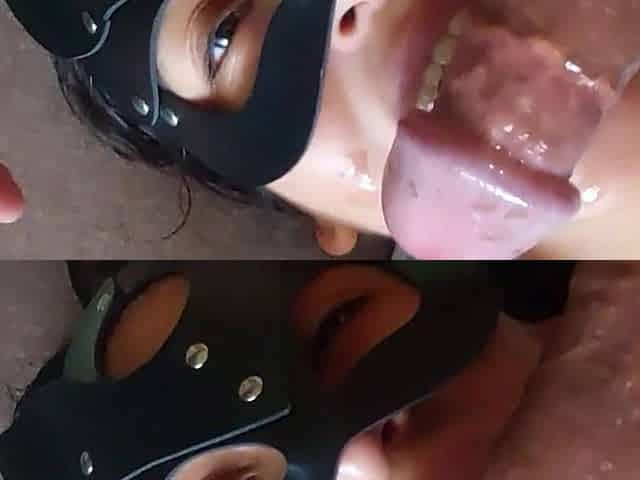 Masked bitch gets spanked and ends up in her throat out of compassion