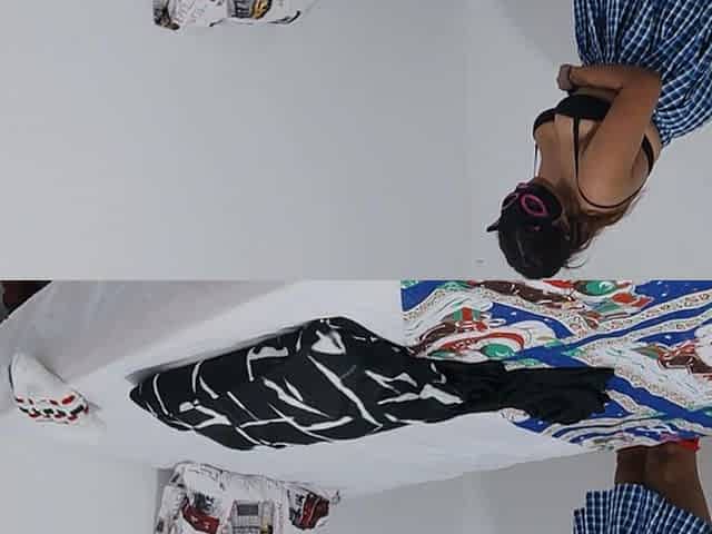 Sexy Latina Having Fun Trying on Clothes and Cutting Them.