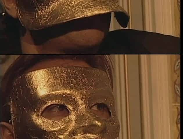 Mysterious Threesome for a Brunette with Two Masked Men