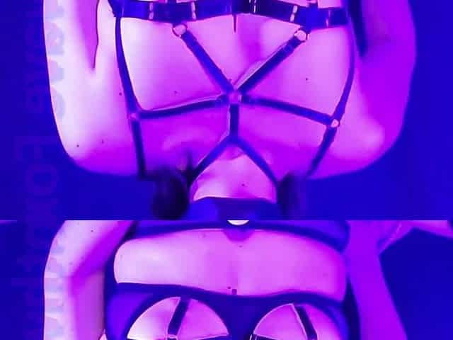 Sexy Girl in Leather Lingerie Blowjob and Footjob