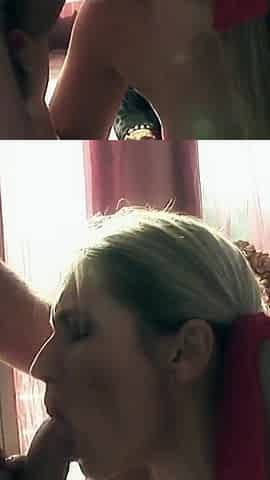 MILF with Blonde Pigtails and Perfect Tits Gives a POV Blowjob with Cumshot in Her Mouth