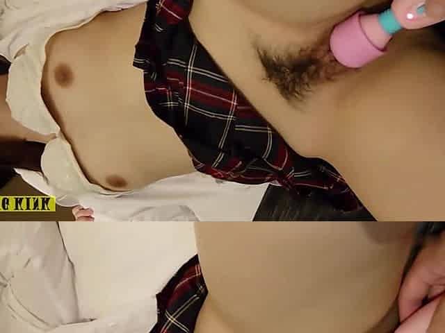 Horny amateur masked Asian teen toying on webcam show