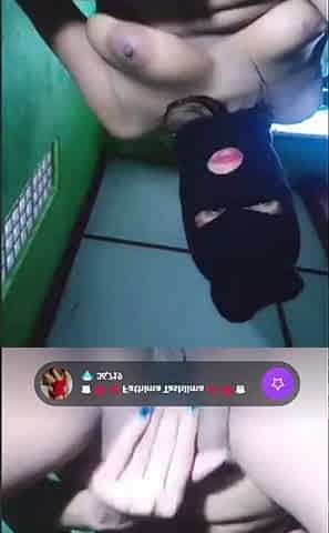 Horny amateur masked Asian teen toying on webcam show