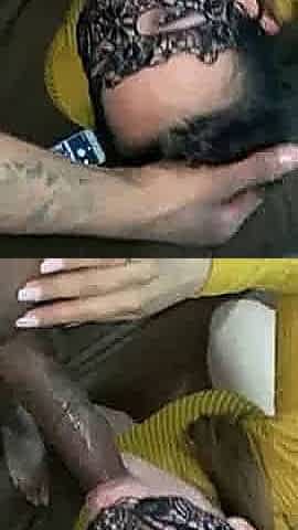 Masked wifesucks on my long dick like a professional
