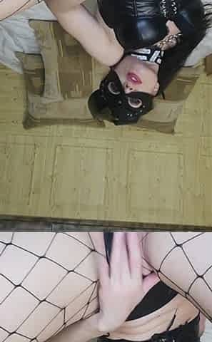 CG Manga Bad Gal in Ebony Mask and Latex Pants - Intensive Anal Missionary Bang and Squatting on a Large Weenie