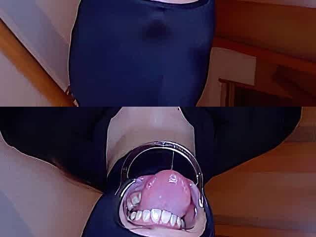 Full movie scene of showing off my large ramrod with collar and latex female hood