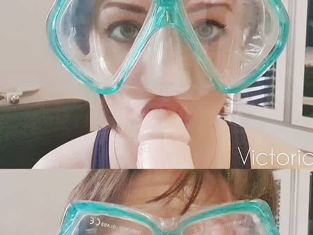 Blowjob in a diving mask and sex machine