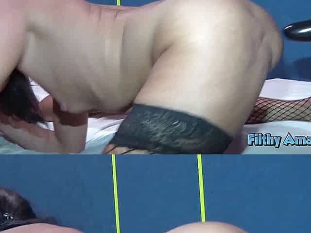 I enjoy hubby's ass while the fucking machine stretches my pussy