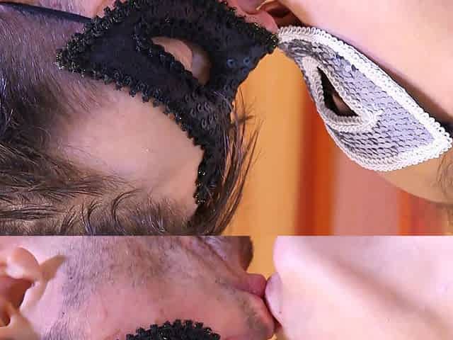 Masked girl sensual sucking dick lover after party
