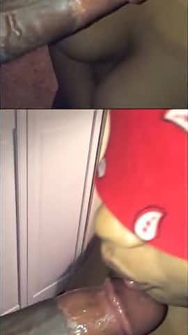 With my ski mask on her knees sucking BBC dick
