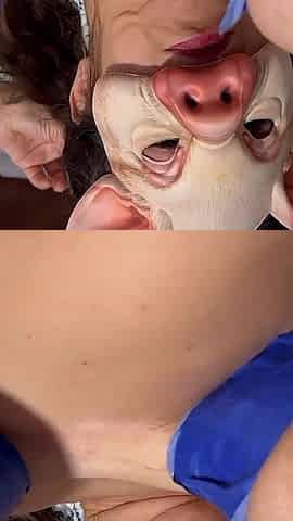 coarse mouth bang with beauty in mask
