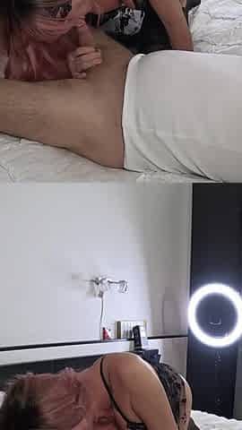 MILF POV Blowjob in Latex with Cum on Tongue