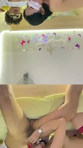 Io mi masturbo la figa bagnata mentre mio marito si diverte a menare il suo cazzo duro