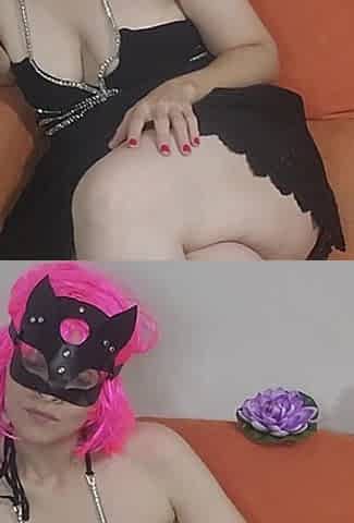 Sparky Pink Meets Shiny Ebony - Miss Eva Mae and Mistresse Vivian - Female Maskers Silicone Body dress