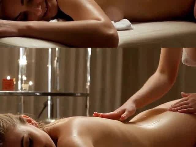 Blonde Milf With Big Tits Practices On Stepdaughter Her Massage Skills And Please Her