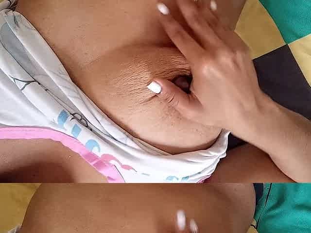 A super sexy brunette massages her big boobs