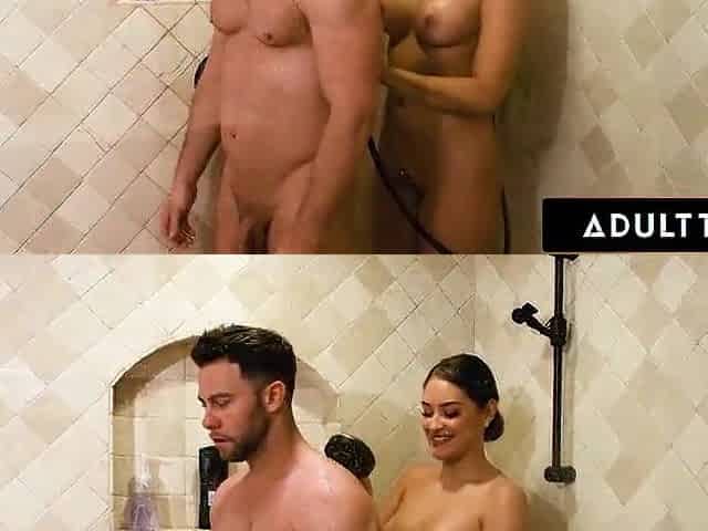 Petite teen Chloe Cherry tries a couples Nuru massage with the masseuse's husband!