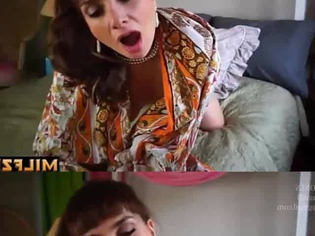 Horny stepmom rides thick cock