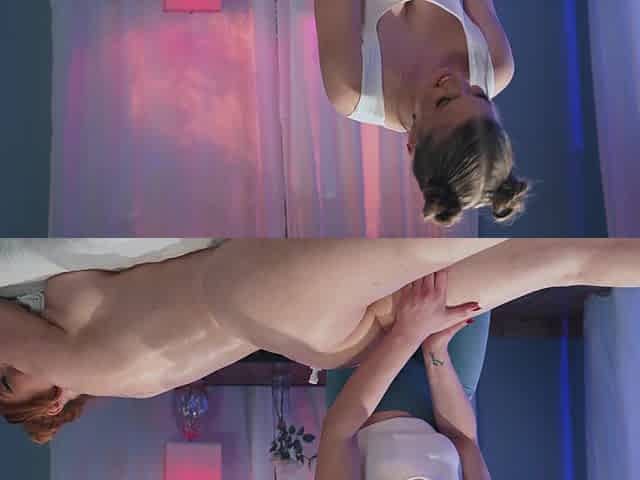 Redhead masseuse octavia gives a hot lesbian massage to her client lauren.
