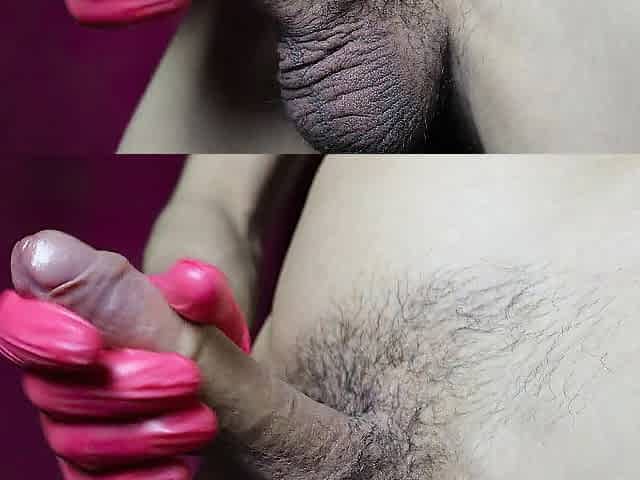 a hard and lengthy massage of a large schlong with a lubricant in gloves very excites the angel
