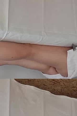 The wife takes off her pants during the massage out of embarrassment