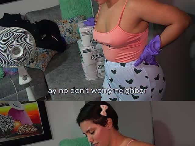 Neighbour comes into my room to clean it and asks me for a massage on her large booty