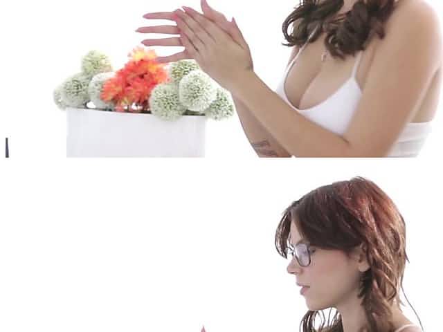 Erotic threesome massage with young perky tits brunette